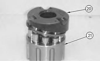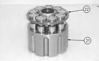 11. Install piston assemblies and retainer plate (22) into barrel assembly (21) .