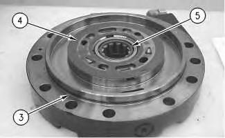 Note: During the installation of head (2) onto the travel motor, be careful not to damage the mating surfaces of the components.