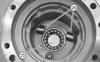 8. Install keys (26) and locating pins (not shown) into the body of the travel motor.