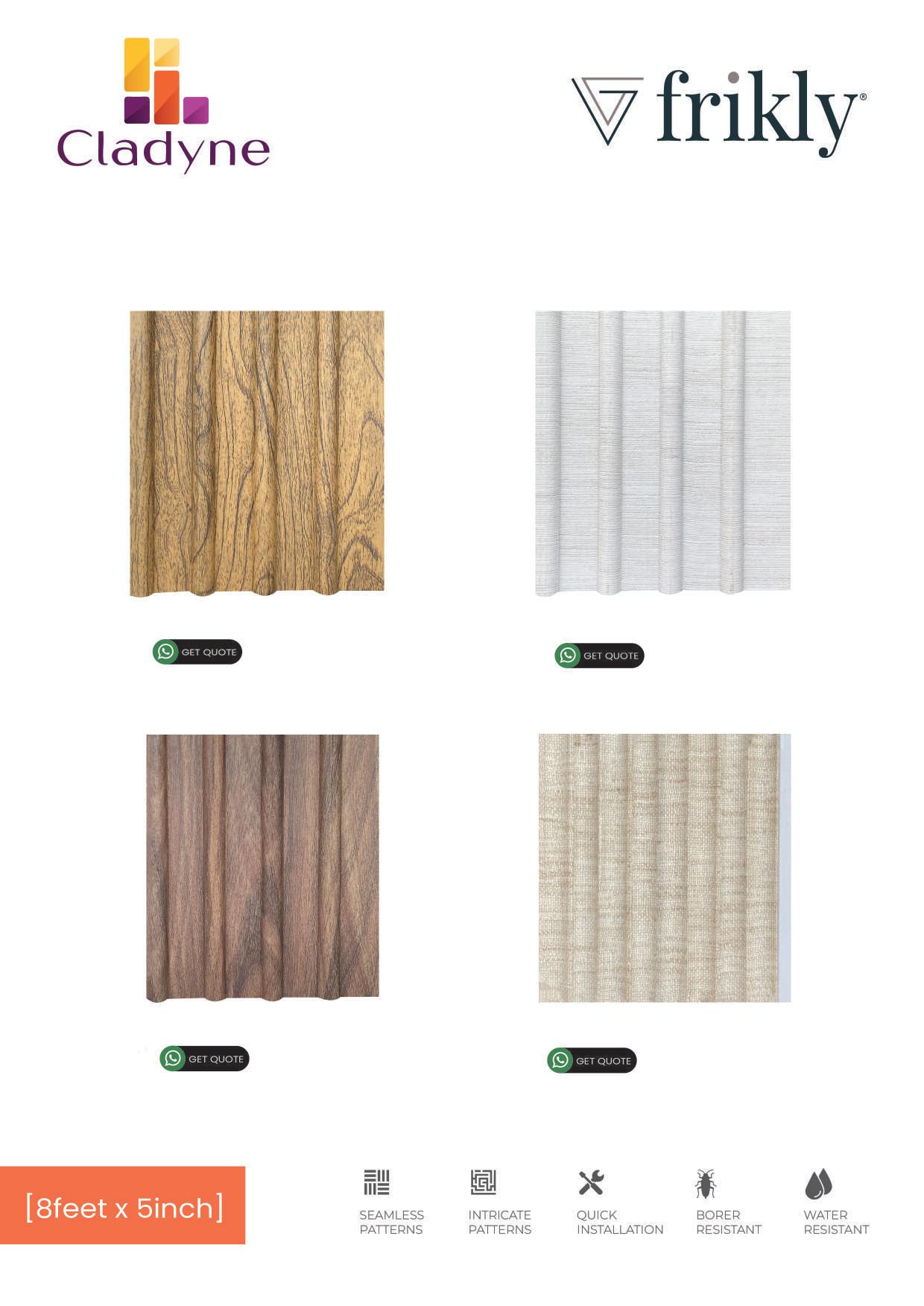 CL-6301 ND GET QUOTE CL-6295 ND GET QUOTE CL-6288 ND GET QUOTE CL-6294 ND GET QUOTE INTRICATE PATTERNS SEAMLESS PATTERNS QUICK INSTALLATION WATER RESISTANT BORER RESISTANT