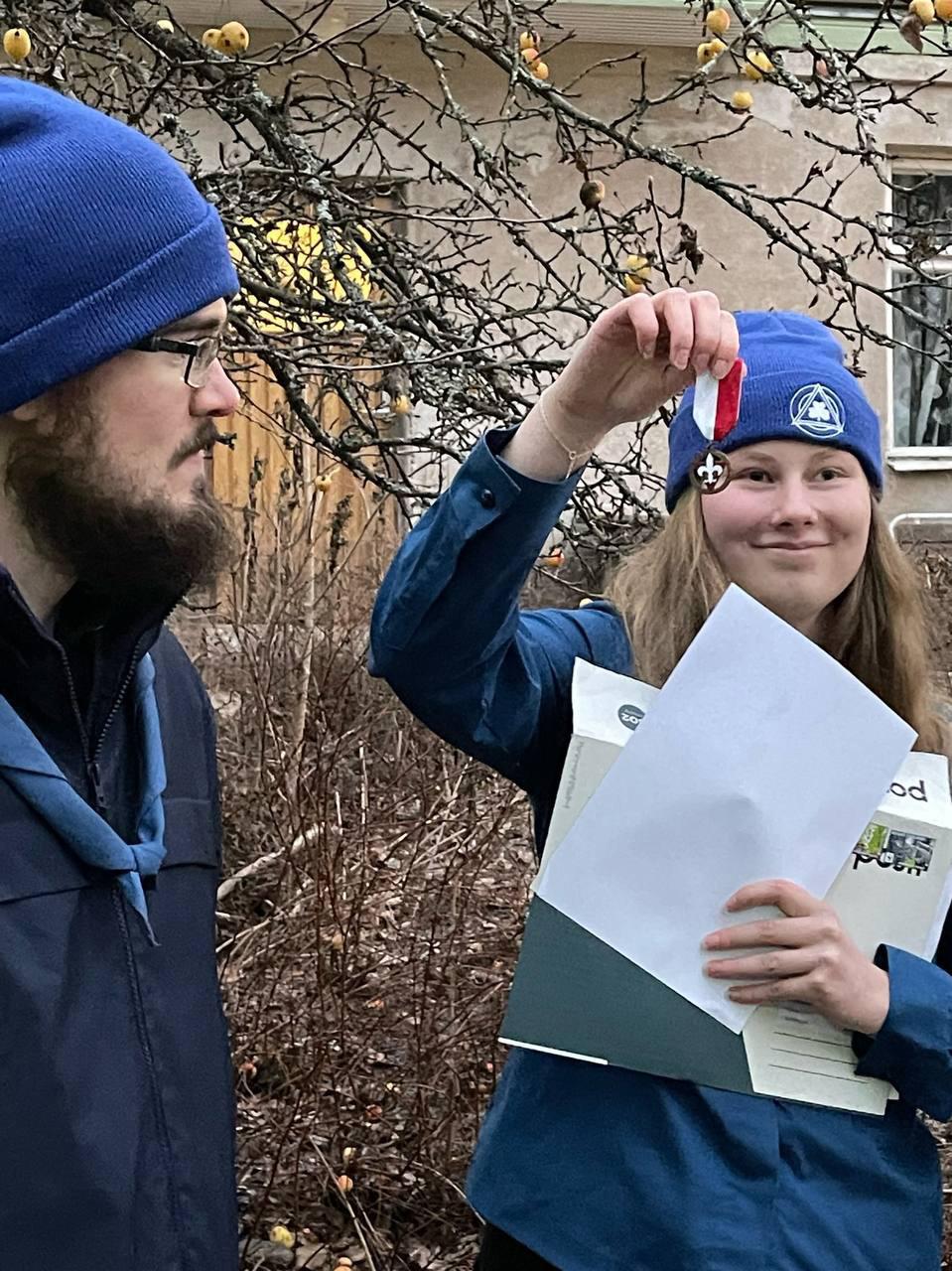 På julfesten fick vi också dela ut FS Polstjärnespänne åt vår fantastiska ledare Pippi. Polstjärnespännet är ett ideologiskt tecken som delas ut åt en scoutledare som tagit sig an scoutingens värderingar, samt åstadkommit utveckling och engagemang för scoutverksamheten hos övriga scouter. Pippi har gjort precis detta genom att vara ödmjuk och flitig, samt förbundit sig till scoutingens värderingar även i sitt privatliv.