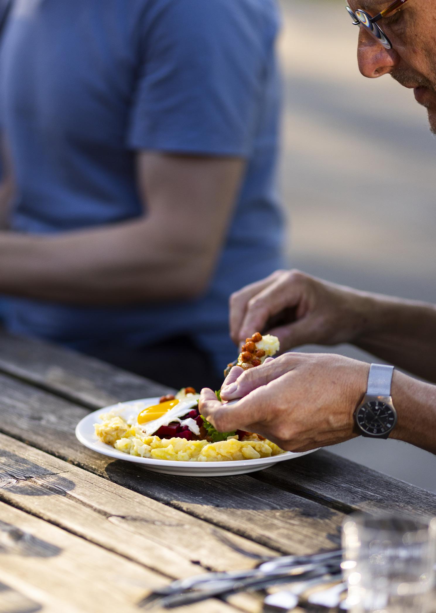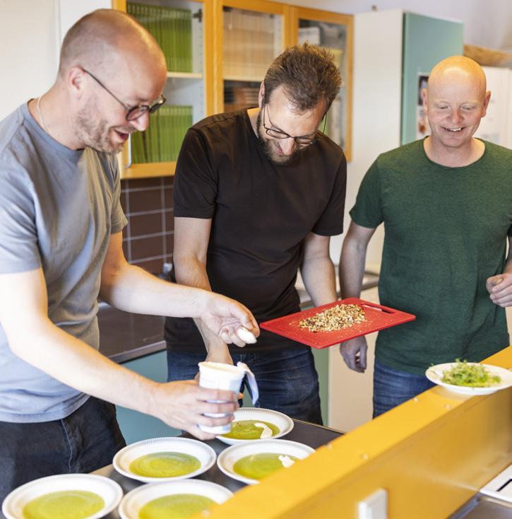 “Vi er en blandet flok mænd med forskellige baggrunde. Nogle er meget bekendt med KFUM og KFUK, mens andre ingen kendskab har. Der er ingen af os, der har nogle særlige forudsætninger for at lave vegetarisk mad, men alle byder ind med det, de kan, og vi lykkes som regel med at få lavet noget superlækkert mad.”