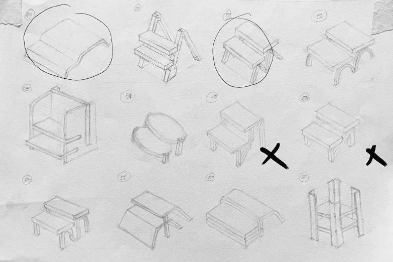 The Sulog step stool is a functional and stylish piece of furniture designed to offer a practical solution for reaching higher shelves or cabinets for homes. This step stool is specifically tailored for Slater Young and his family, drawing inspiration from the color and material palette of the Sky Pod–their iconic residence. The step stool’s design harmonizes with the Sky Pod’s signature blend of black, wood, and industrial elements. The deep matte black of the stool’s wave-inspired sides resonates with the industrial flair of the Young residence, while the natural wooden steps are a nod to the warm, welcoming textures found in their abode.