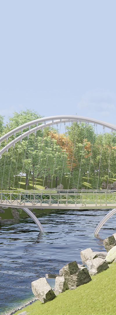Design competition with a fellow student. This bridge is meant to replace the Middle Road Bridge in Mississauga, Ontario, located on Etobicoke Creek. The purpose of this design entry is to highlight the usage of steel structurally. The bridge is supported by two arches with steel tension cables. Additionally, the bridge is held up with steel supports below and the deck is supported by a series of steel trusses.