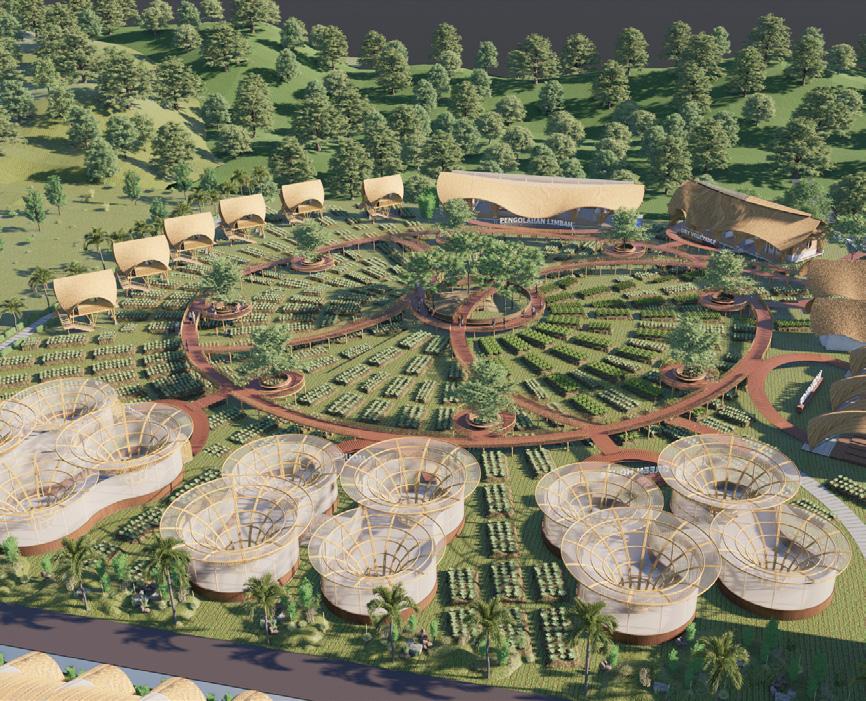 Mempertahankan eksisting perkebunan serta aktivitas petani dengan respon desain berupa struktur panggung. Selain itu, pendekatan tropis menjadi salah satu upaya dalam merespon iklim.