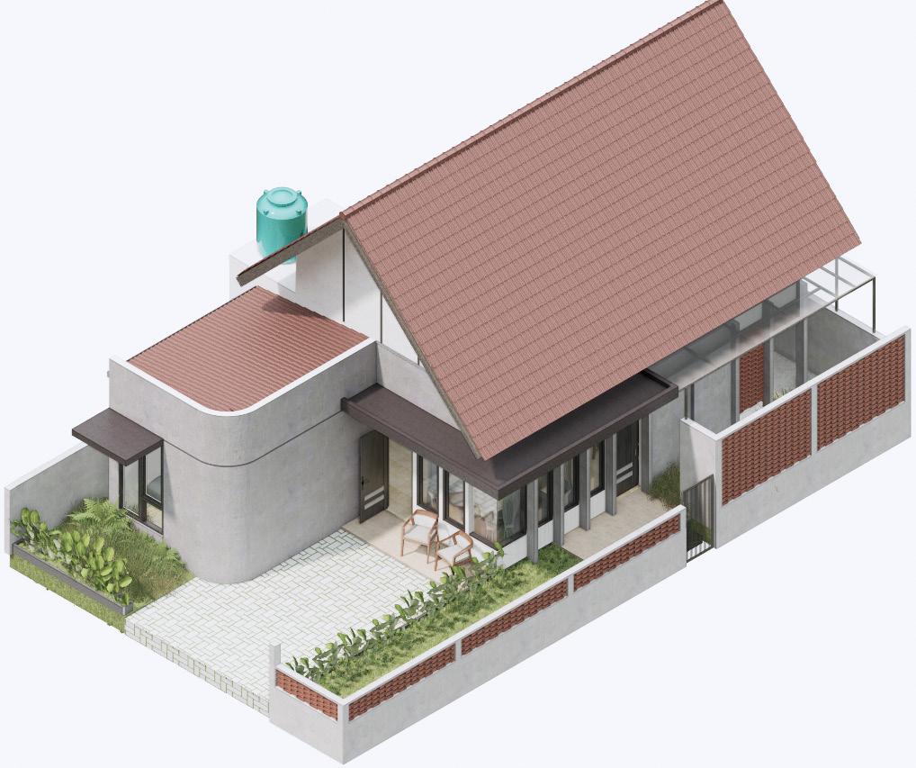 Owner yang merupakan berjumlah 4 orang terdiri dari wanita dewasa, 1 nenek dan 1 anak laki-laki. Dikarenakan lokasi tapak berada di kawasan pedesaan, maka owner ingin memiliki tampilan rumah modern sehingga terlihat kontras dari bangunan yang ada disekitarnya. Berada diposisi hook dan berada disamping eksisting rumah lama milik keluarga owner sehingga perlunya side entrance yang dapat mengkoneksikan antara rumah owner dan rumah lama.