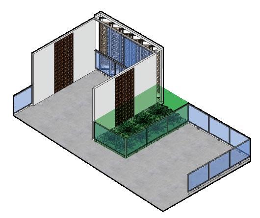 Bangunan green house saling terkonek si dengan sebuah jalur sirkulasi