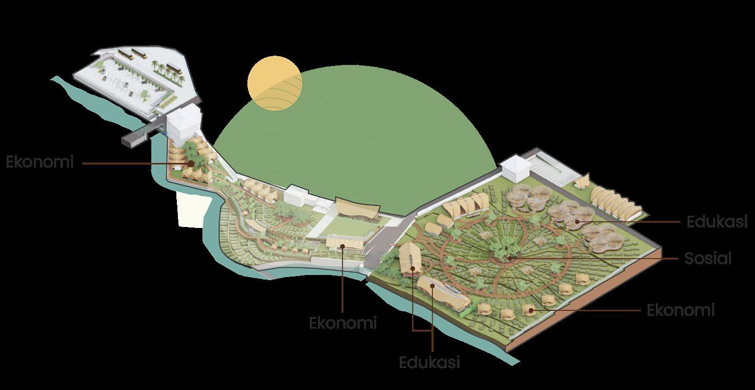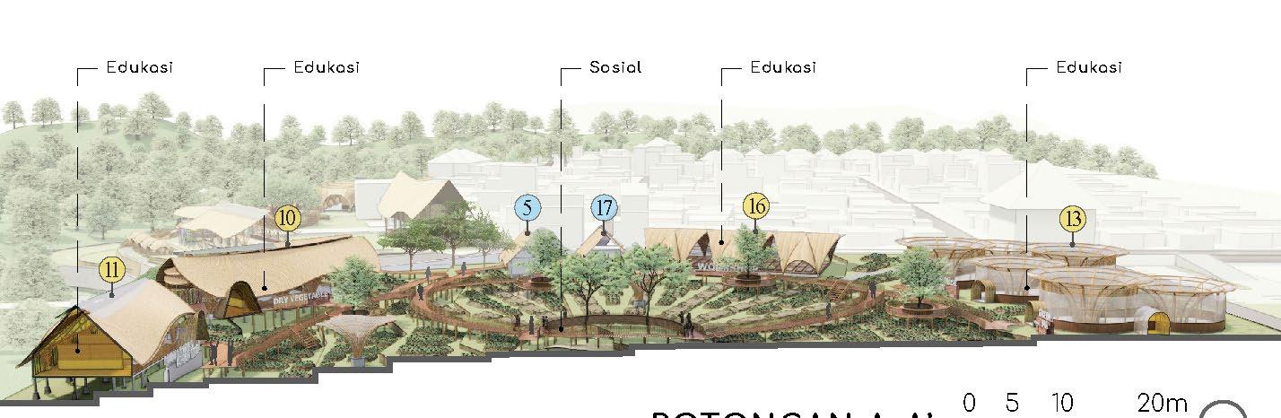 Mempertahankan eksisting perkebunan serta aktivitas petani dengan respon desain berupa struktur panggung. Selain itu, pendekatan tropis menjadi salah satu upaya dalam merespon iklim.