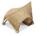 Pos satpam merupakan transformasi dari bentuk lumbung yang merupakan identitas arsitektur lombok. Material yang digunakan yaitu material alami berupa kayu dan jerami