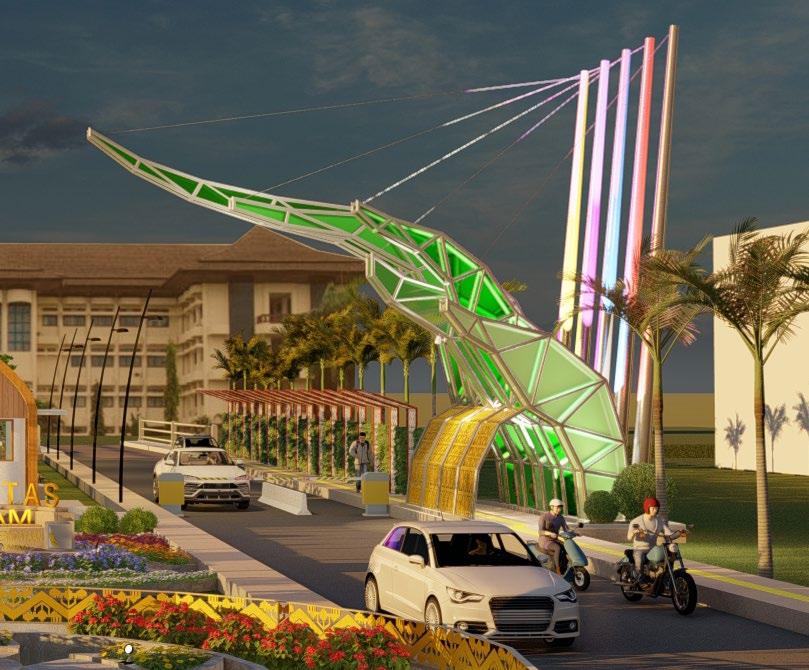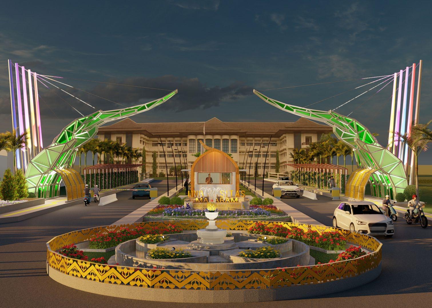 Mataram ingin membangun gerbang kampus pada bagian depan dan samping kampus sebagai akses masuk dan keluar para pengguna kampus. Desain yang ikonik memiliki bentuk ikonik dengan menerapkan unsur lokalitas baik dari penerapan material hingga elemen desainnya