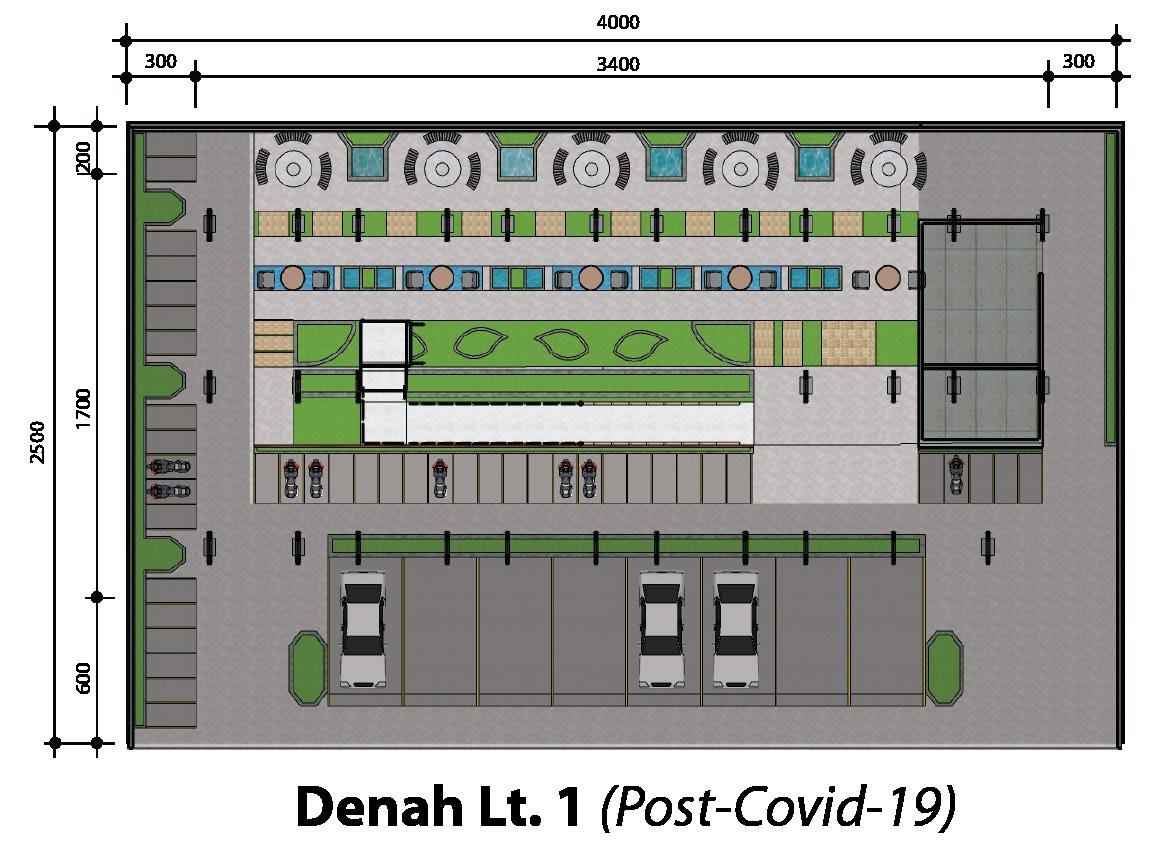 Ketika pandemi COVID-19 telah berakhir, ruangan dapat digunakan untuk menampung pengunjung dengan maksimal. Material yang digunakan pada dinding penyekat tidak permanen sehingga dapat dibongkar pasang. Dengan demikian, jarak antar box yang awalnya digunakan untuk sirkulasi udara ketika social distancing, nantinya dapat digunakan sebagai ruang sehingga dapat menggabungkan 2 ruang menjadi 1 ruangan sehingga kapasitas pengunjung semakin bertambah