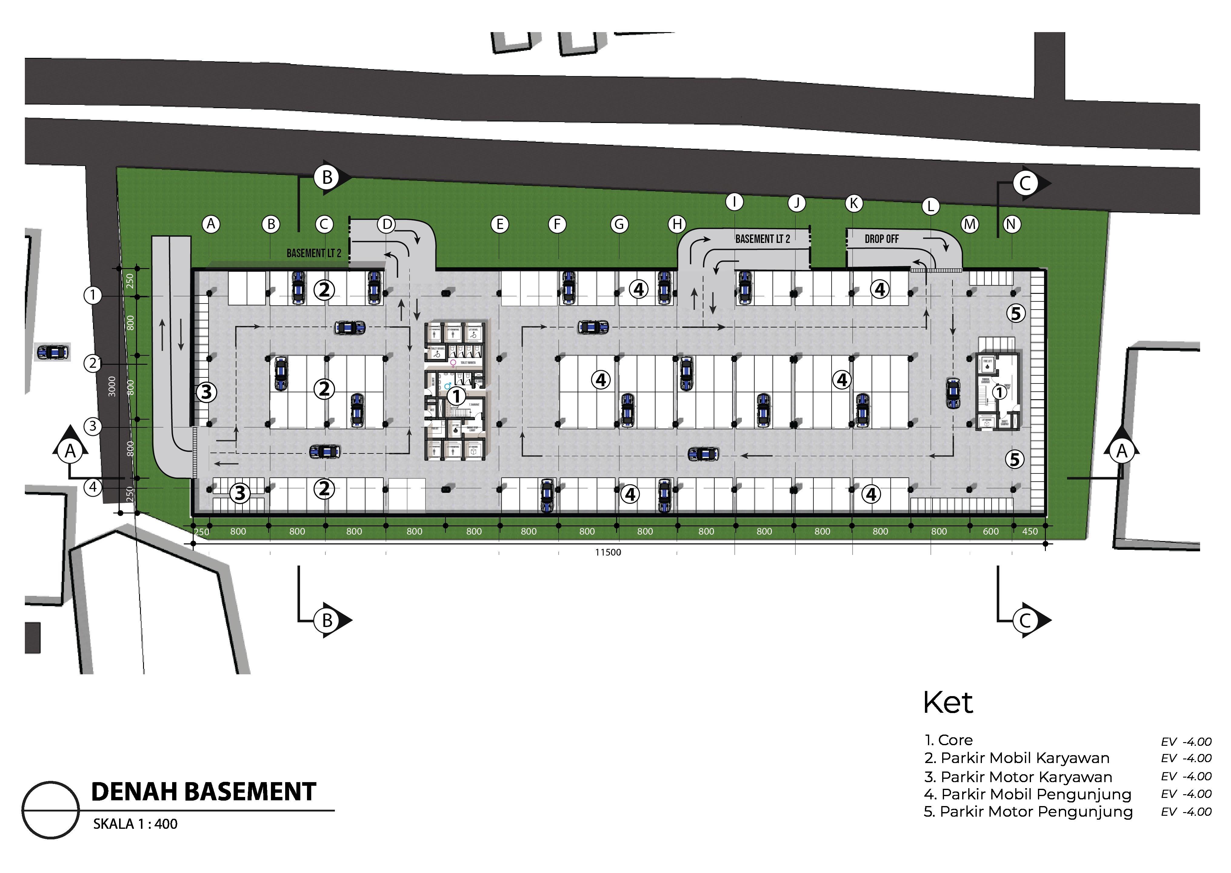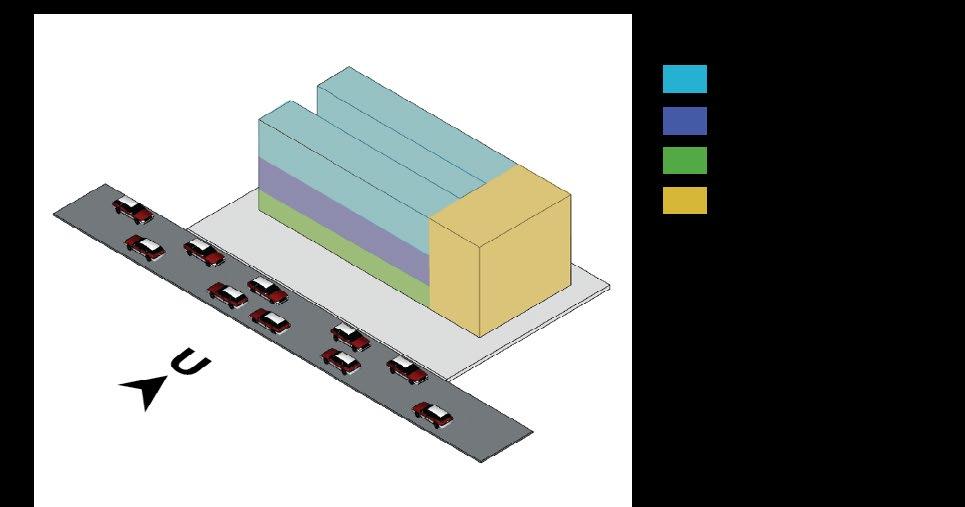 Orientasi bangunan menghadap selatan memungkinkan cross ventilation Viod sebagai respon terhadap penghawaan dan pecahayaan alami Lantai 1 bangunan sebagai area komunal dan parkir Zonasi berdasarkan fungsi dan sifat ruang