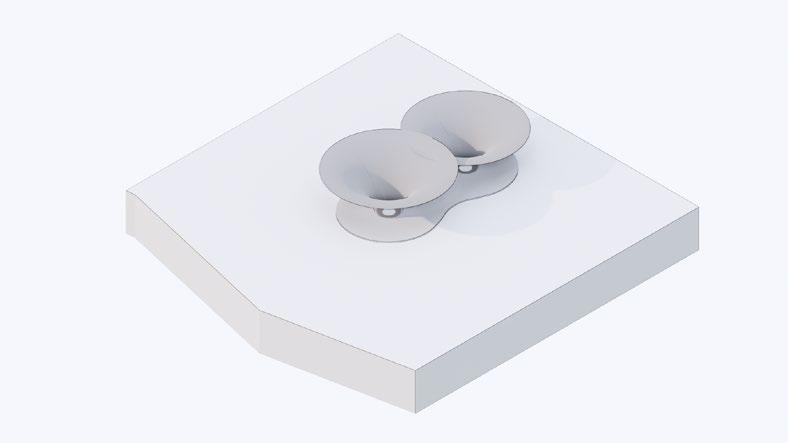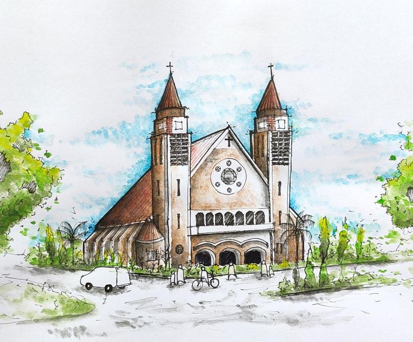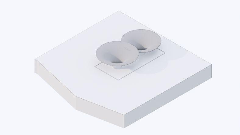 Bentuk denah mengikuti bentuk atap berupa rain harvesting
