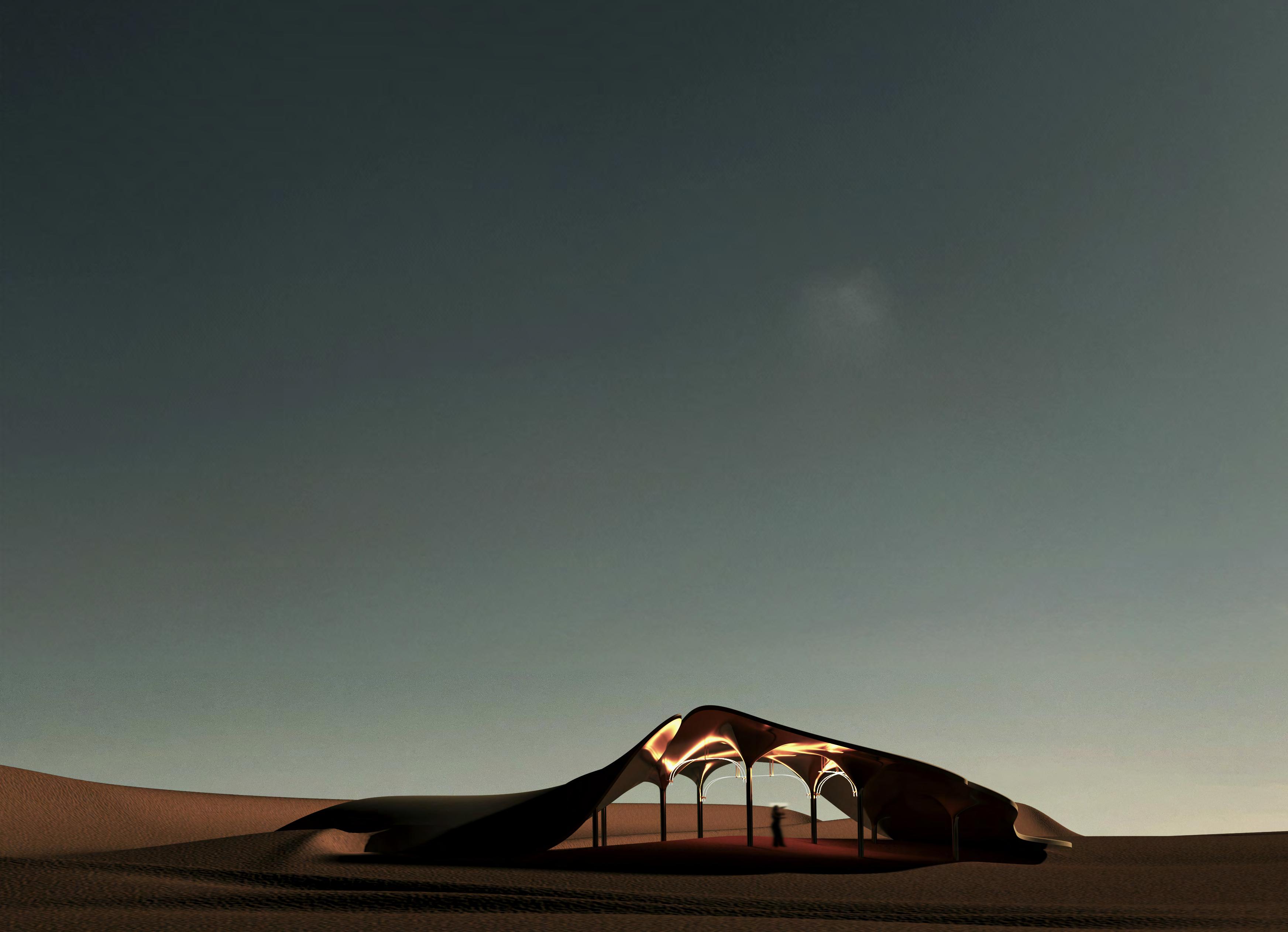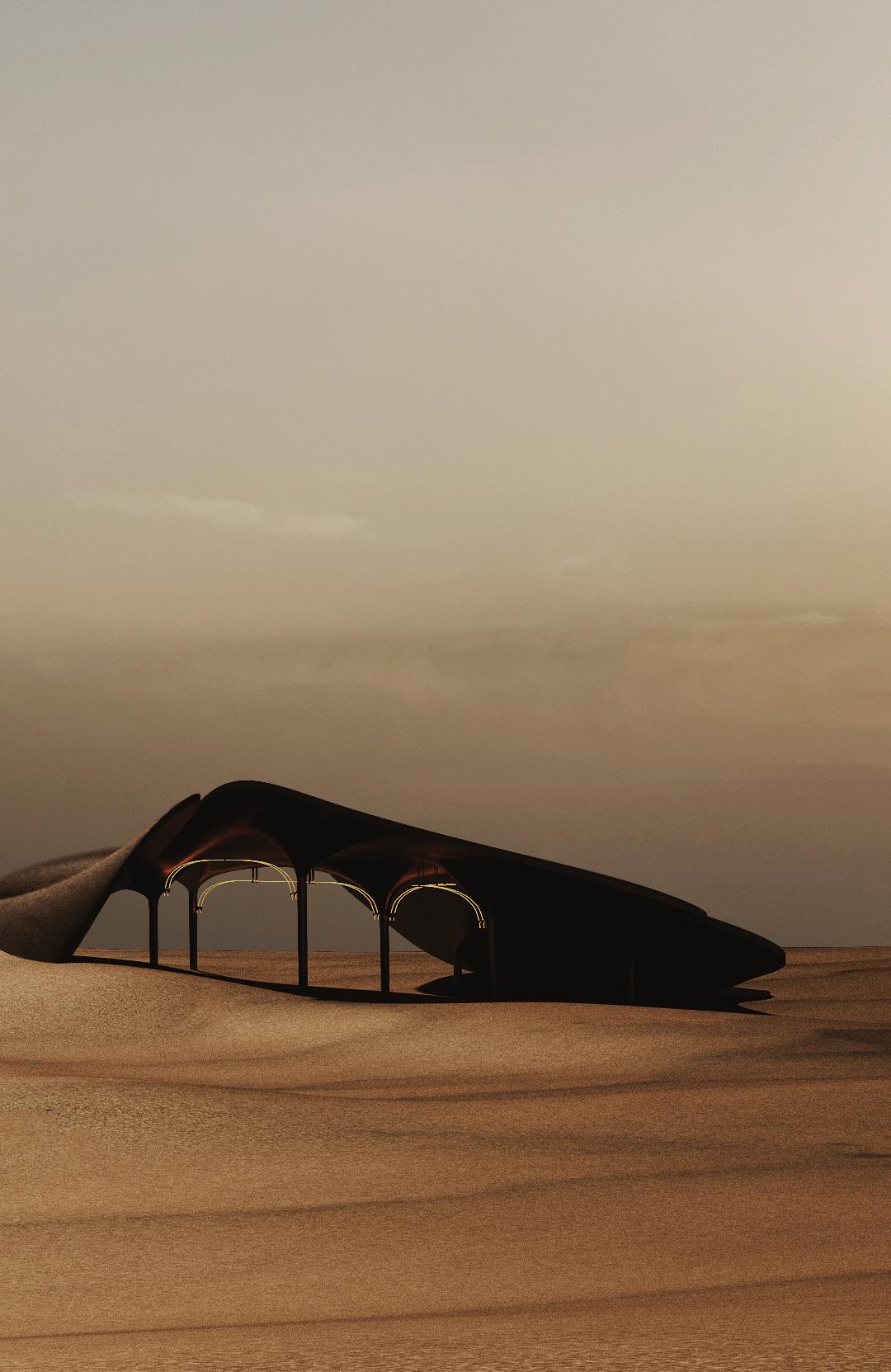 Design and geology are separate planes that inform and complement one another. Dunes create transient constructed environments within their concave faces; these environments shield occupants from harsh winds and offer dramatic manipulations of daylight; both geological offerings can be incorporated into built environments, and this crafts an embroidery between man and land. How can we reach out to our environment’s activity and have a direct conversation that produces a complementary language through built environments despite societal disruptions ?