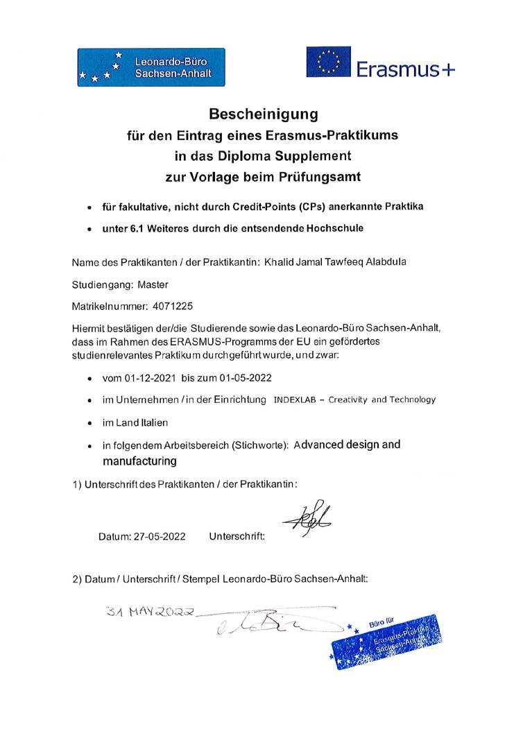 DEC,2021 - MAI, 2022 LECCO, ITALIEN JAN, 2021 - FEB, 2021 DESSAU, DEUTSCHLAND NOV, 2017 - FEB, 2018 AMMAN, JORDANIEN JUL, 2017 - OKT, 2017 AMMAN, JORDANIEN MAILAND, ITALIEN FEB,2021 - JUL, 2021 DESSAU, DEUTSCHLAND APR, 2020 - OKT, 2022 AMMAN, JORDANIEN 2011 - 2017 SOMMERCAMP-EXKURSION QUEDLINBURG 27.09.2021 - 03.10.2021 DIGITALFUTURES 26-27.06.2021 ANHALT HS WORKSHOP DESSAU 01.10.2021 - 30.11.2021 Alfatraining DESSAU, 22.05.2023 - 14.07.2023 Alfatraining DESSAU 17.07.2023 - 11.08.2023 SPRACHEN PORTFOLIO Arabic English German Italian Mutter Sprache Verhandlungssicher Verhandlungssicher Anfänger Haupt Skills Revit 3DsMax ArchiCad Python BKI Photoshop Twinmotion Rhino AutoCad Obsidian Illustrator SketchUp Enscape Grasshopper Blender InDesign MS Office Dynamo Lumion C Sharp ORCA AVA Prusaslicer V-Ray Rhino Mittlere Skills Anfänger