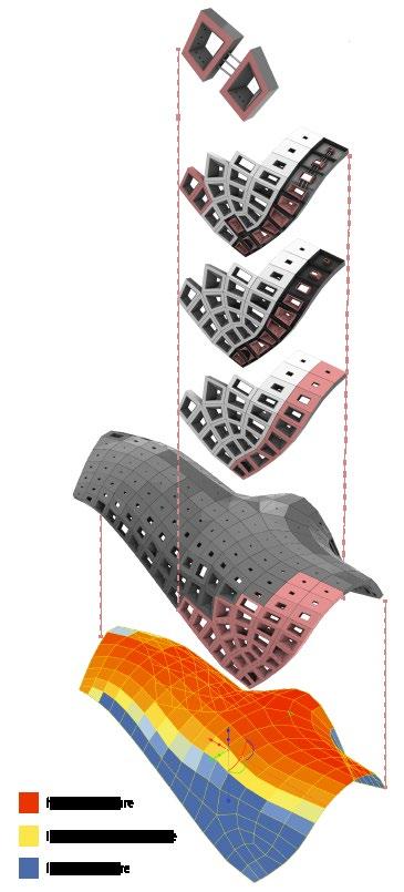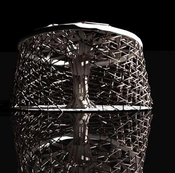 Konzeptuelle Entwürfe zur Untersuchung einer Vielzahl von Designstrategien unter Verwendung von parametrischem Design zur Bearbeitung komplexer geometrischer Formen und struktureller Topologien.