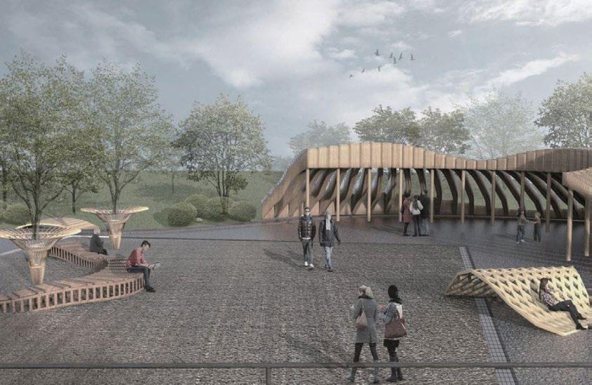 Pavillon für kulturelle Veranstaltungen und Landschaftsinstallationen zur Förderung der Begehbarkeit: