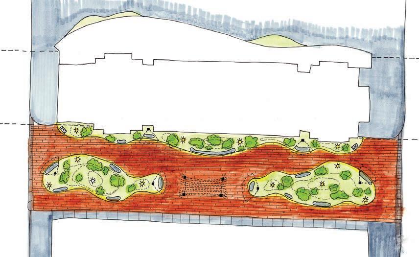 •Materials (brick, lighting) are modern echoes to the early 20th materials and architecture surrounding the plaza