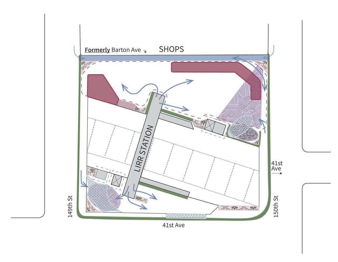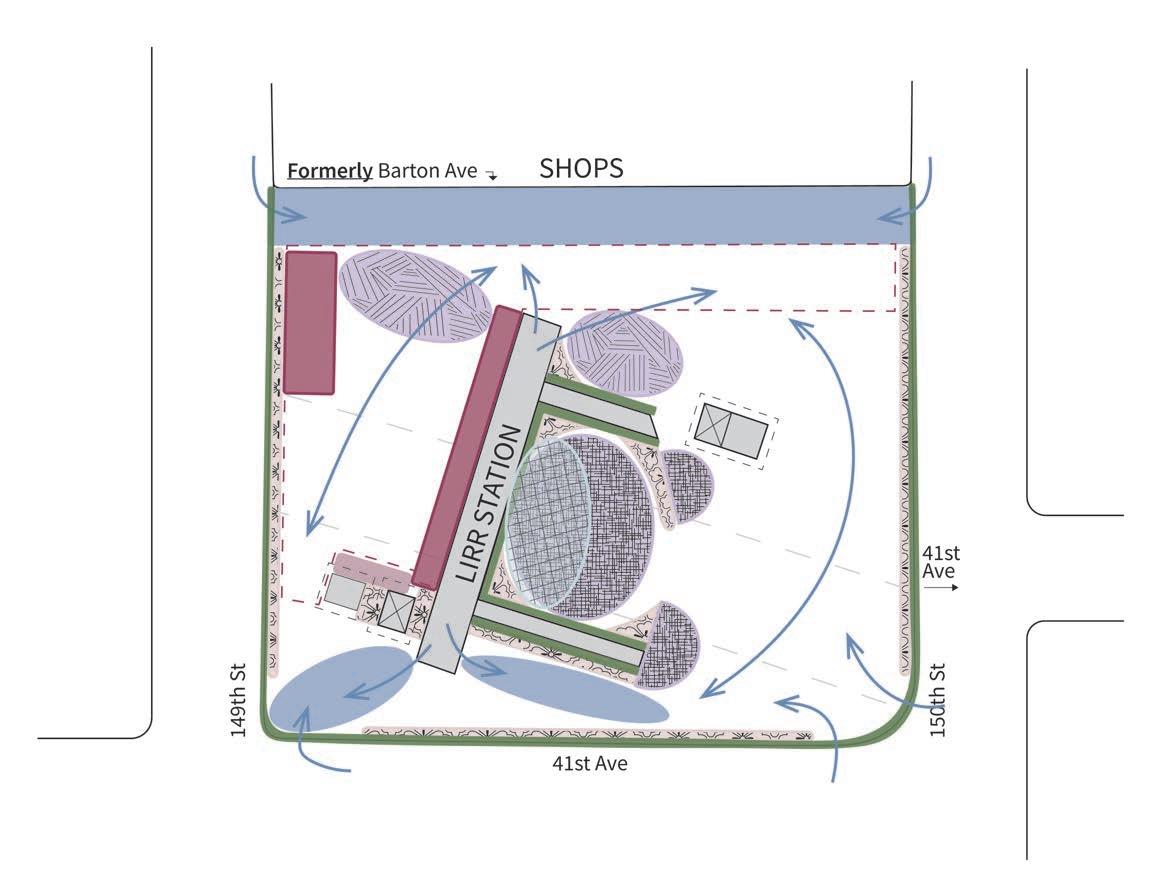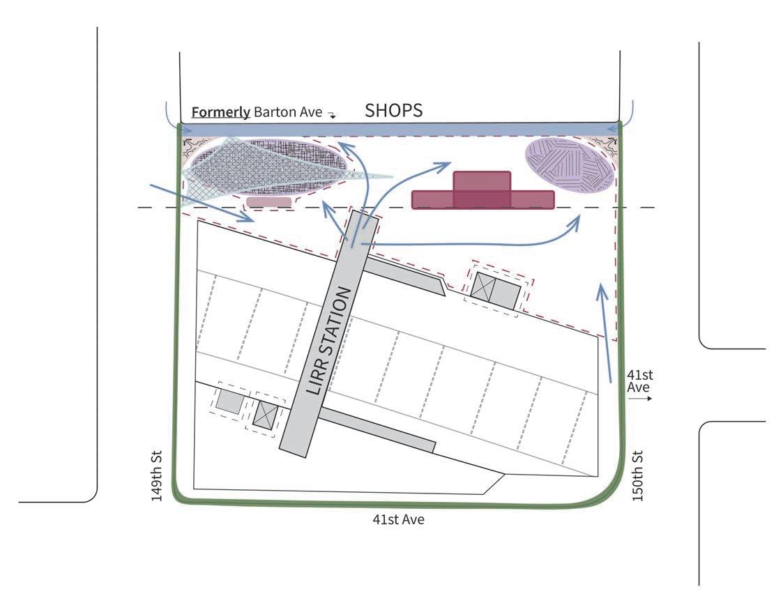 Upon exiiting Grand Central, Pershing Green awaits them, with playful reminders of the journey along the way