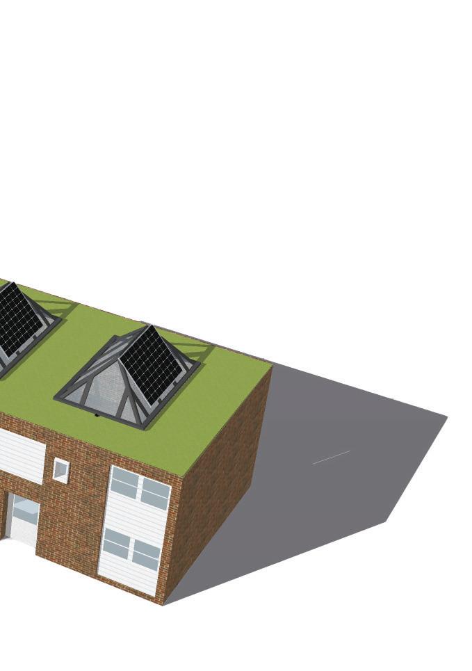 addition of solar panels on the south side along with skylights to maximize air flow, ventilation and natural lighting.
