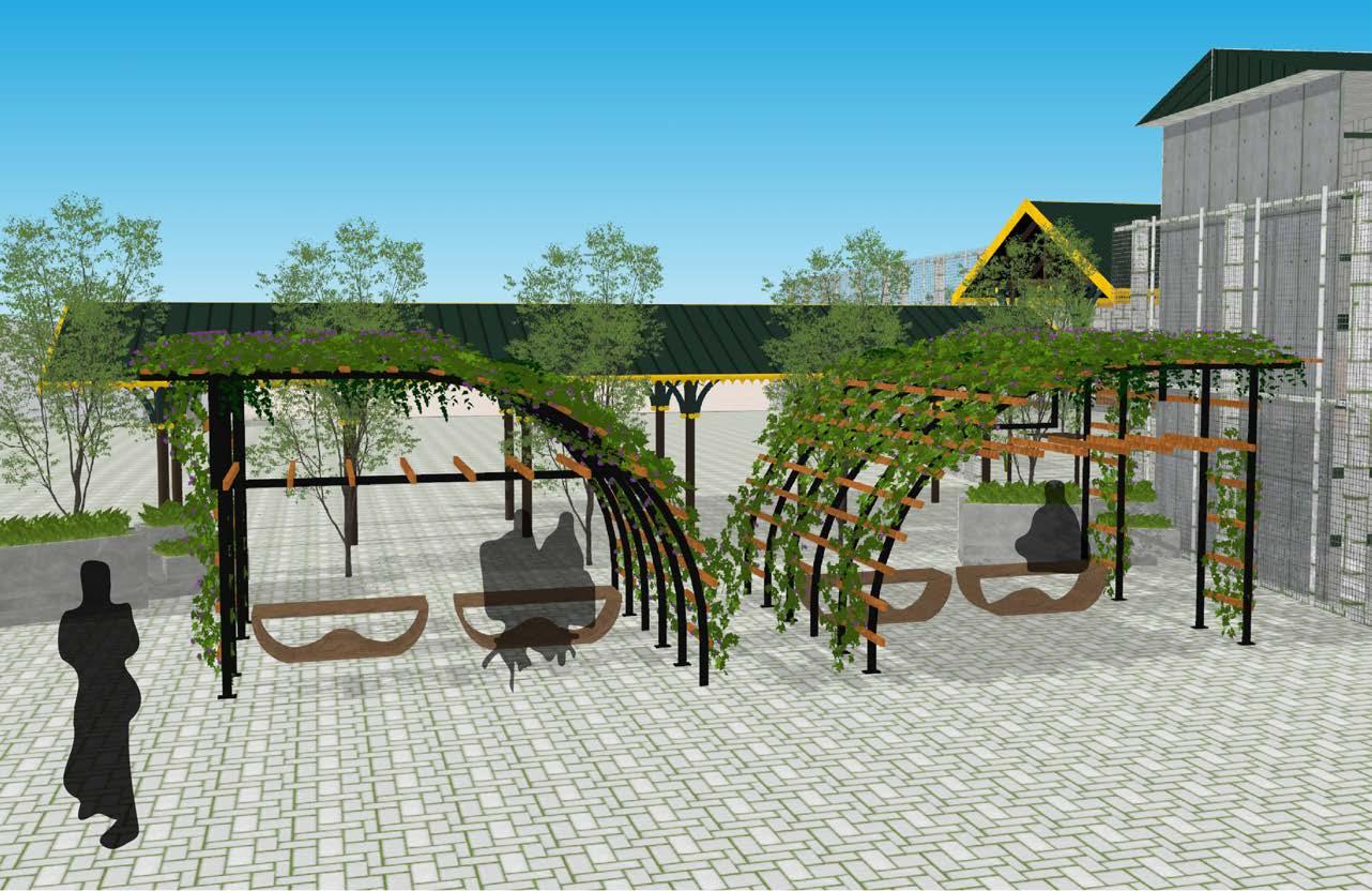 42 RAINSCREEN PAVILION COFFEE SHOP SIGNAGE PERGOLA SOLAR LAMP FRAGRANT FLOWERS INSTALLATION SIGNAGE COFFEE SHOP TEXTURE SIGNAGE SOLAR LAMPS PERGOLA WITH FABRIC BANNERS SEATING WAYFINDING THROUGH PLACEMAKINGSMI CAMPUS HANAPUREAKIY-R