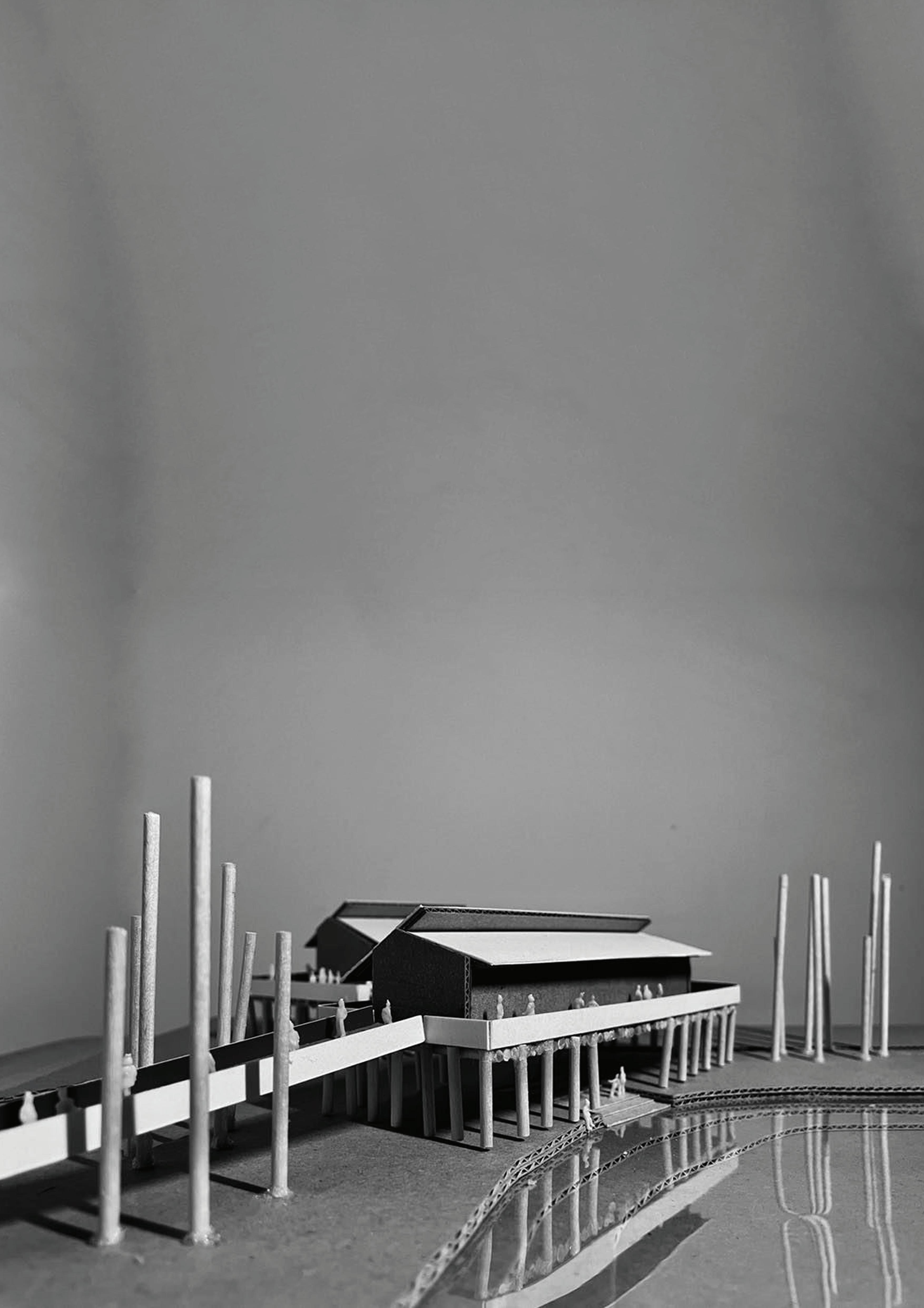 The aim of the visitor centre is not to be an architectural landmark itself, but to become one with its destination, allowing viitors to find different narratives in which the landscape can be experienced through. Orientated in the ESE direction to maximise cross ventilation, the scheme sits on the river bank to allow for different journeys in which the visitors can approach the centre; by foot, by car, and by boat.