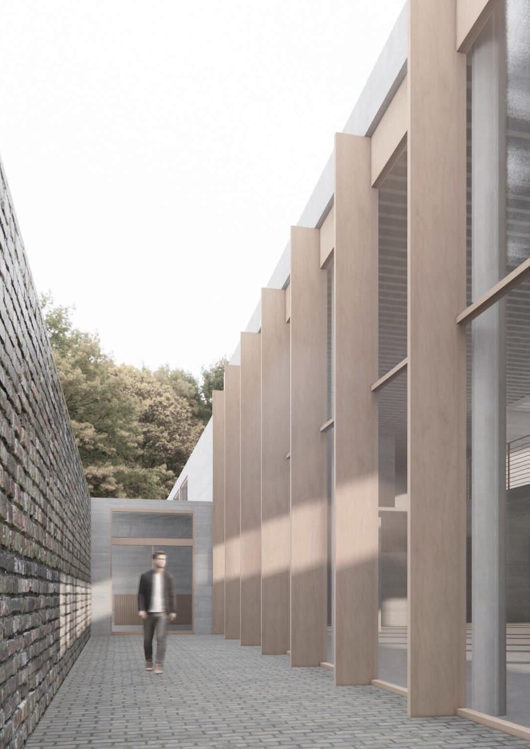 Conceptdevelopment: Forprivacyreasons,the manager’saccomodationisseperatedfromthe centre.Aninclusionofarampforaccessibilityisan architecturalfeatureofitself,becomingpartofone ofthejourneysyoucantaketothevisitorcentre.