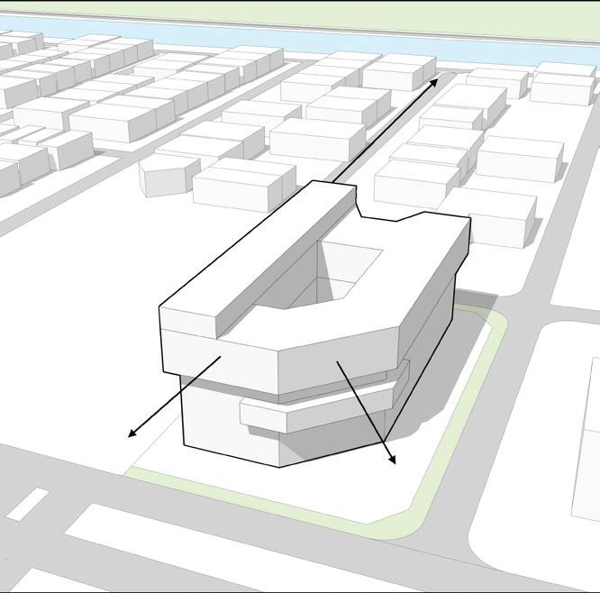 The initial form of the building mass follows building regulations.