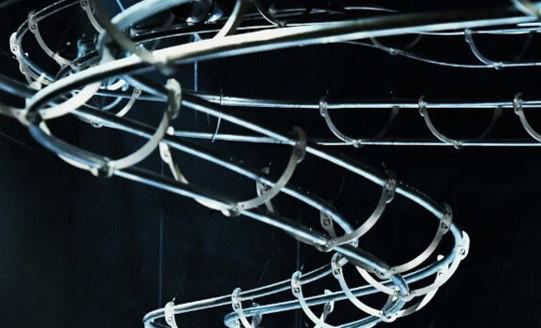 After a customer selects a product, the ball will drop to the rail on the ceiling and be delivered to the customisation area.