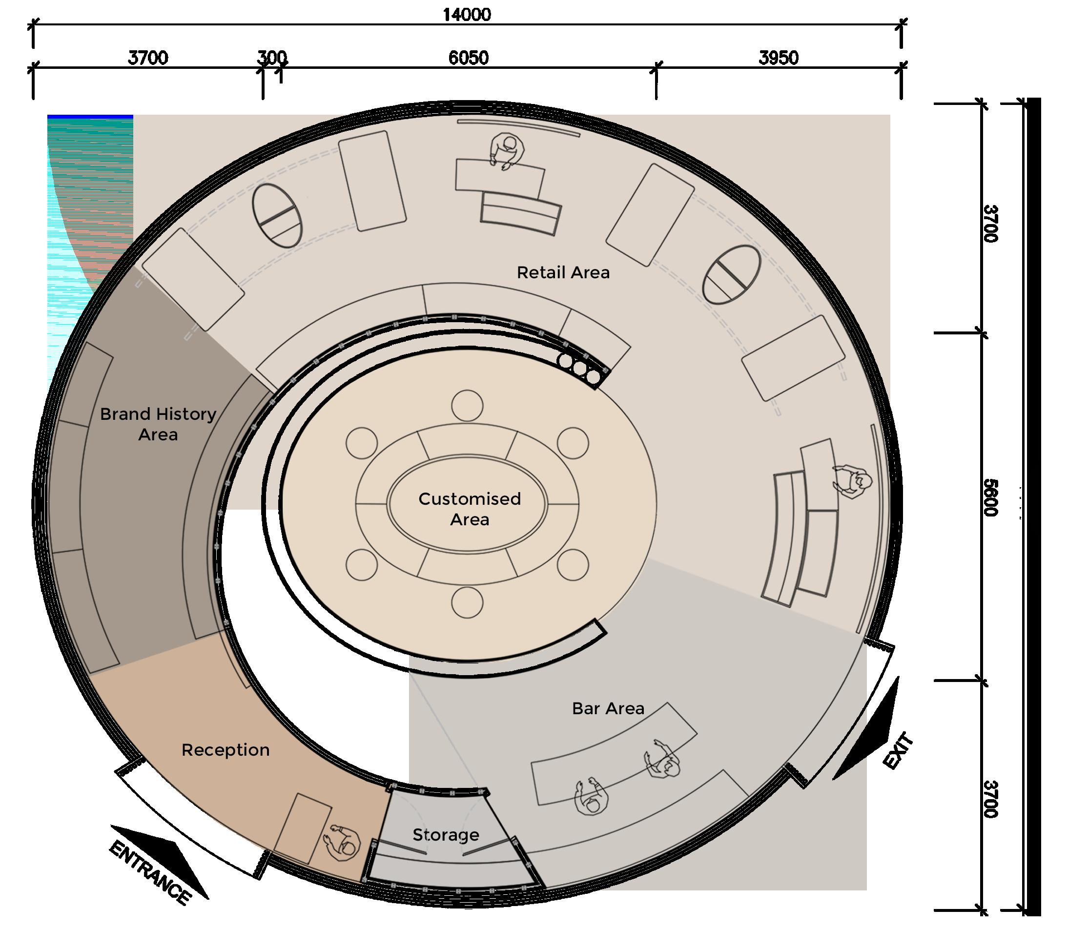 The retail store layout is designed for customers to walk one-way in-store as a galaxy ring to provide a user experience in which customers can interact with all of the programmes while walking through the store.