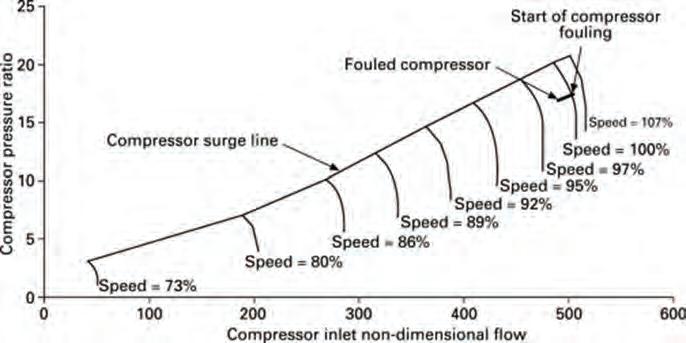 The compressor control should compensate for the fouling that occurs over time and provide a safety “barrier” for subsequent surges. The control will automatically shift the surge control line as fouling occurs keeping the machine operating properly in a possible surge event. Furthermore, the formation of fouling increases the gas temperature. To reduce