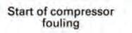 The cracked gas contains trace amounts of compounds that can polymerize within the gas stream and stick to the flow path in the compressor. This fouling degrades the performance of the compressor and often the actual surge line of the compressor tends to shift towards right side of performance curve as residue builds up. Reference Figure 2.