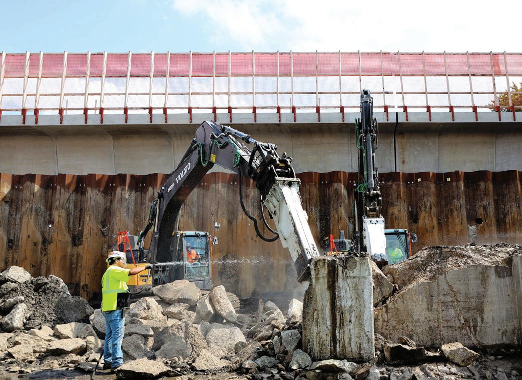 Rick Anderson, General Superintendent for Walsh, explains: “There’s a lot going on and everything’s tight. For this demolition job, we’ve got sheet removal. We’re breaking up concrete. Haul trucks are moving material in and out, plus there’s general cleanup. To navigate these challenges, Walsh is operating 13 Volvo ECR235 excavators, two ECR355 excavators, and four wheel loaders (L90–L120).