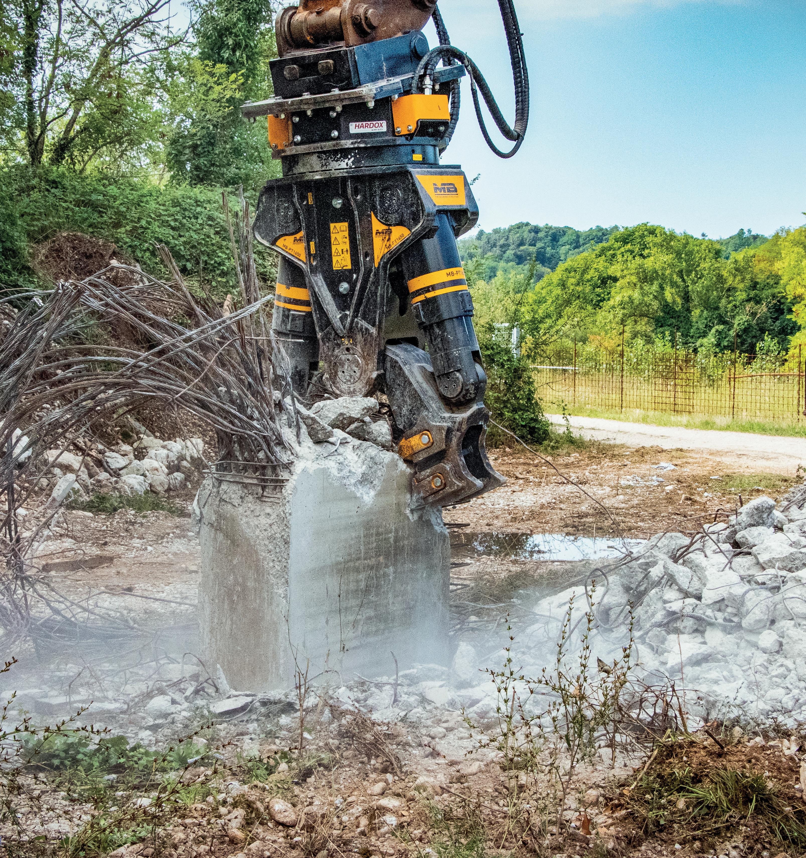 The performance of a concrete or scrap shear is especially important when mounted on a high reach demolition machine.