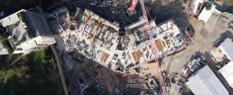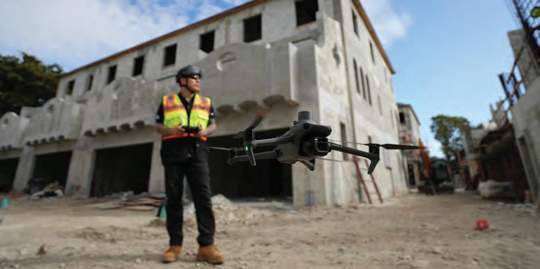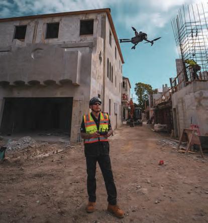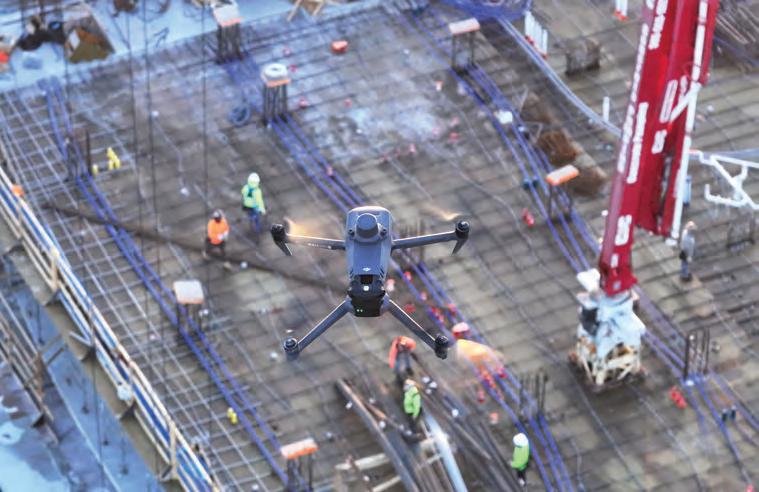 A DRONE FLYING OVER A CONSTRUCTION SITE