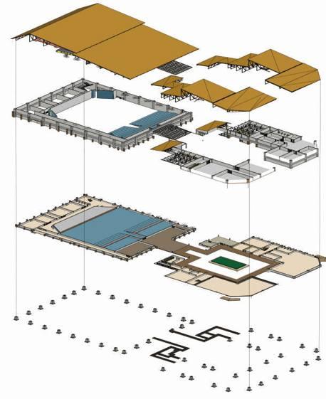 Proses pembentukan bangunan ini dimulai dari penentuan k ruang komunal di tengah area. Lalu dilakukan penambahan penambahan massa pada sisi sayap kanan-kiri dari area komunal. Dilanjutknya dengan massa bangunan utama yaitu denganfungsisebagairuangteater