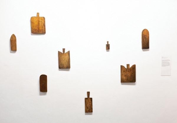 The work references Koranic writing boards, which Rahman recalls using as a child to learn Arabic scripture. On these boards, students would write and rewrite, learning through repetition. Similarly, the cutting boards bear traces of continuous use, where ingredients are cleaned, chopped, and processed. Through this connection, the artist reflects on how recipes, like languages, are transmitted and transformed across the surfaces they pass through.