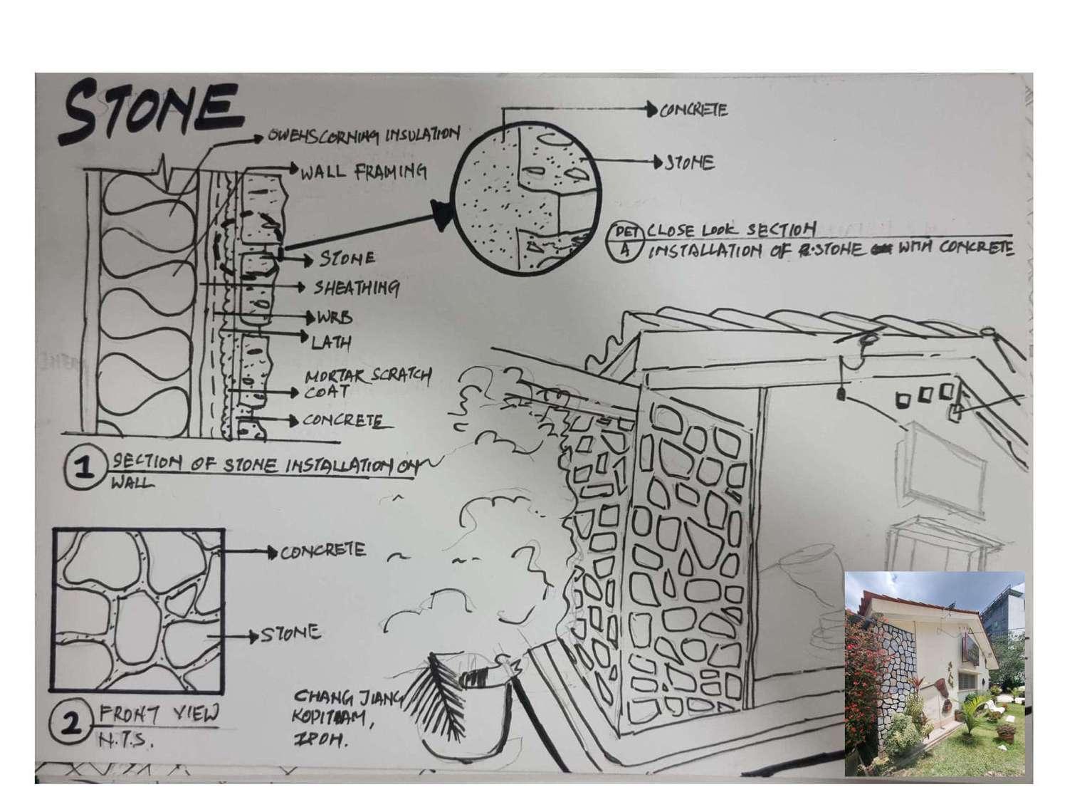 In this project, we are asked to locate and analyze five genuine items/buildings made of stone, metal, wood, tiles, and concrete.