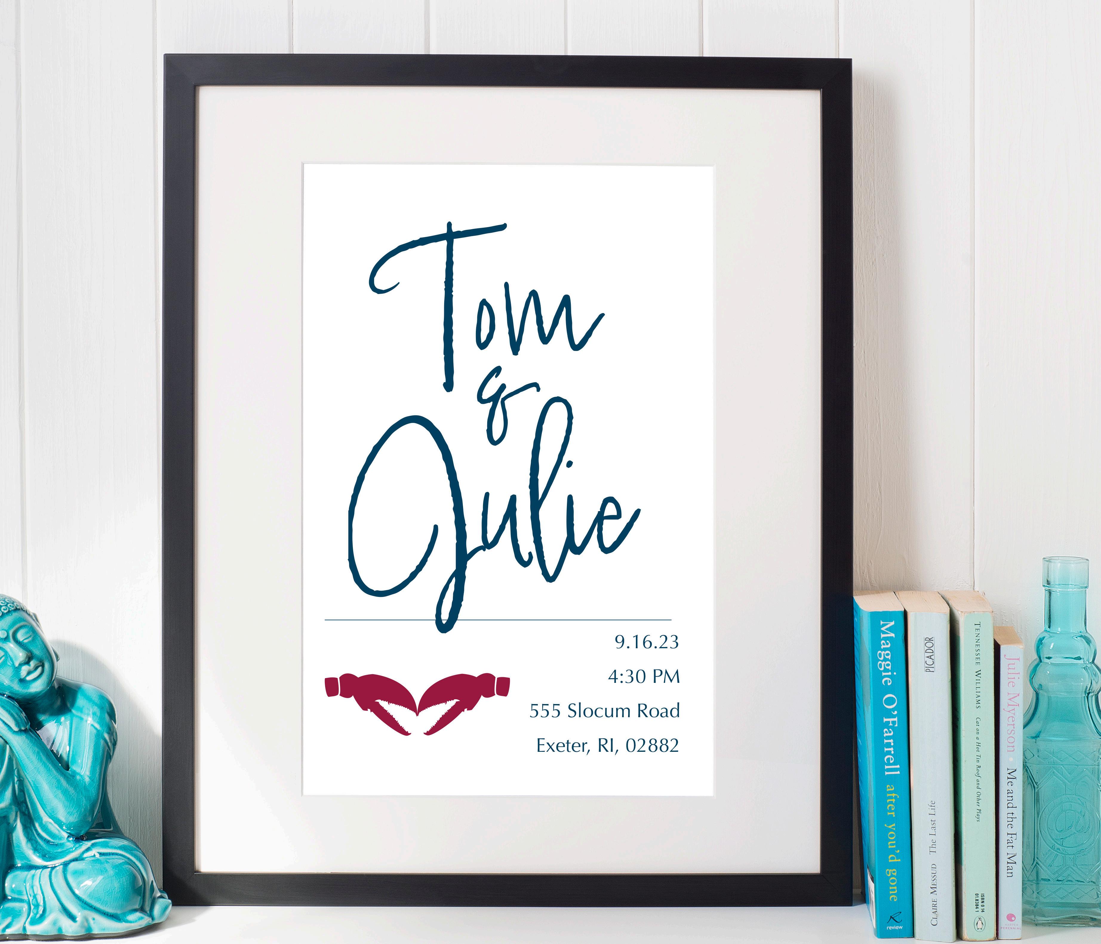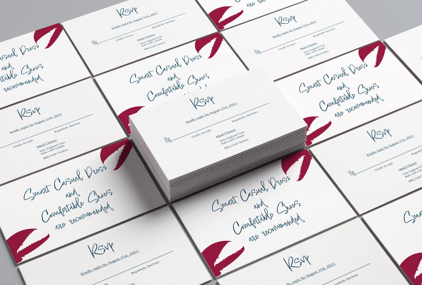 When my dad and Julie met, it was love at first sight. I aimed to evoke the same emotions with the custom design of their wedding labels for gummy lobster jars. Held at a casual, rustic clambake venue, the project allowed for creative expression in a chill yet elegant way. Our whole family loves Disney and has centered a lot of our aesthetic around it, so the “Happily Ever After” theme emerged. Portfolio led to expanding on the design, as I created wedding invitations inspired by oceanic motifs and Disney magic, maintaining a formal tone while capturing the event’s casual vibe. Modifying and expanding upon projects once it’s already over can be difficult, but as Walt Disney said, “it’s kind of fun to do the impossible!