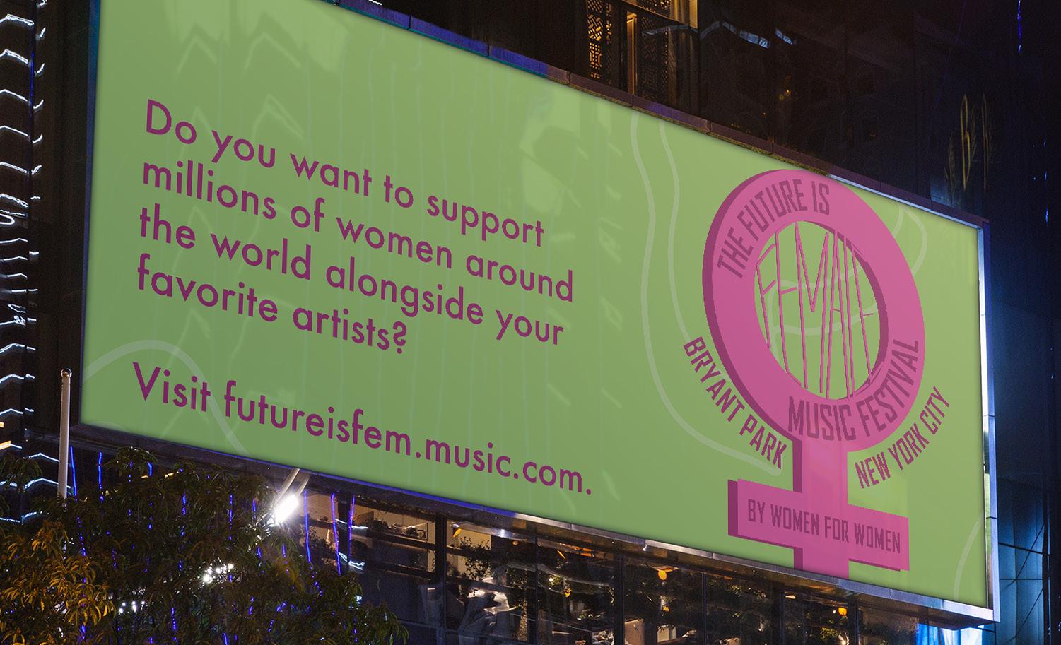 My feminist beliefs deeply influence my design projects, evident in my high school vector featuring the phrase “the future is female.” Inspired by female artists like Ke$ha and Britney Spears, I conceived “The Future is Female” festival, spotlighting diverse talents and supporting charities like the Global Center of Women’s Shelters. Selecting artists across genres, I researched venues and chose Bryant Park in New York City for its resonance with successful festivals. Enhancing the original design with subtle details, I expanded it into merchandise and billboards to promote the event’s charitable mission, underscoring the power of design in advocacy.