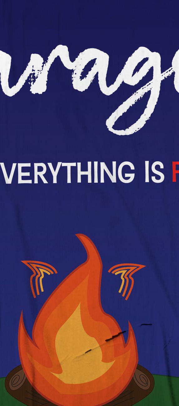 In 2022, the JWU Players brainstormed a chilling escape room concept set in a seemingly idyllic summer camp run by a cult. Initially, I created basic shirts to match the theme, but with newfound experience, I revamped the camp’s aesthetic, blending cheesy nostalgia with eerie undertones. The challenge lay in balancing story authenticity with visual appeal, achieved through deliberately gaudy design choices like gradients and handwritten fonts, subtly hinting at the camp’s sinister secrets.