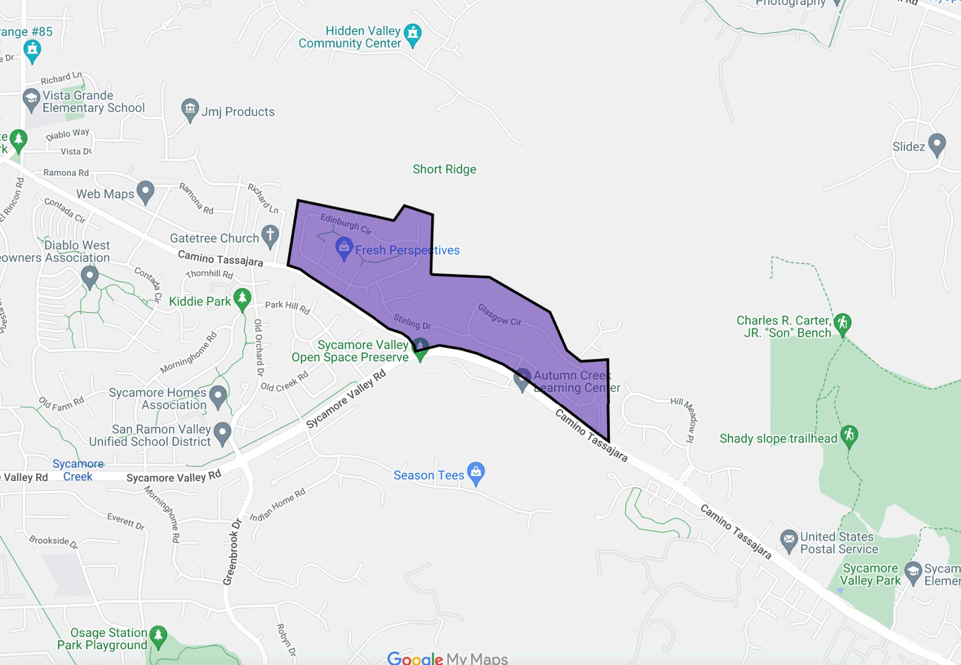 Located both on the North and South side of Sycamore Valley Rd, the Sycamore Area encompasses several neighborhoods & subdivisions