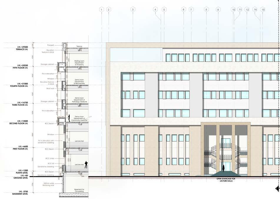 As shown in the above central and ventilation to the surrounding facade section, it shows the technical Brick work with reinforcements.