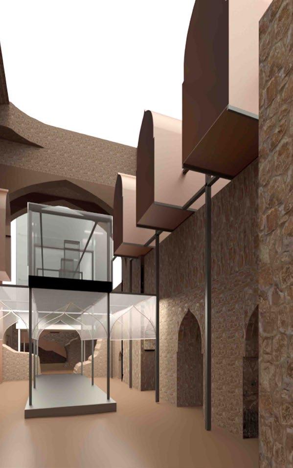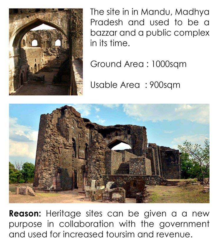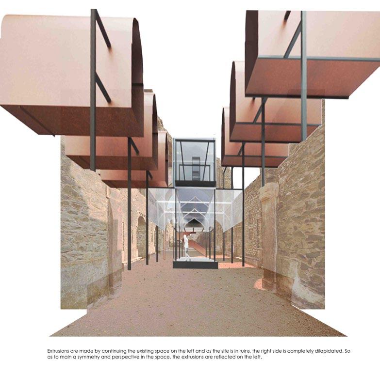 The site is an Indo-Islamic heritage structure in ruins. The proposed intervention is for a Fashion Experience Center with a cladded assembly-based construction concept.