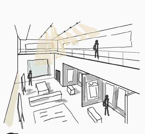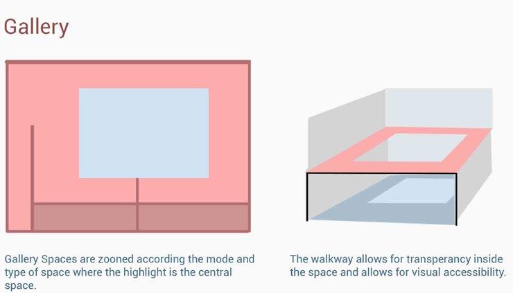 The walkway opens the gallery by allowing the visitor to experience the space from different perspective