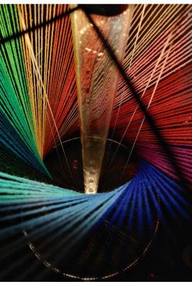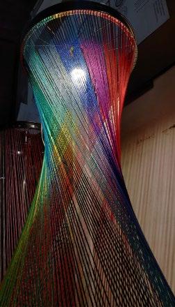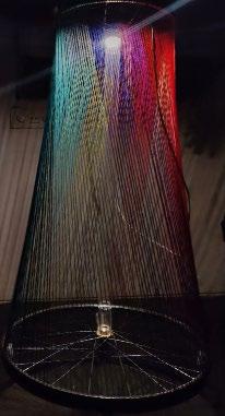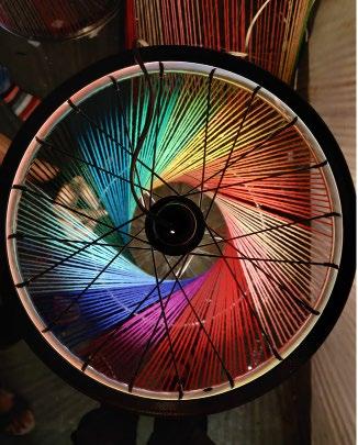 Installation was made using cycle rims and wool threads with acrlyic pipe in the center for lights. It resembles the movement of the ghagra in the Garba.