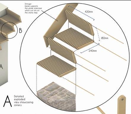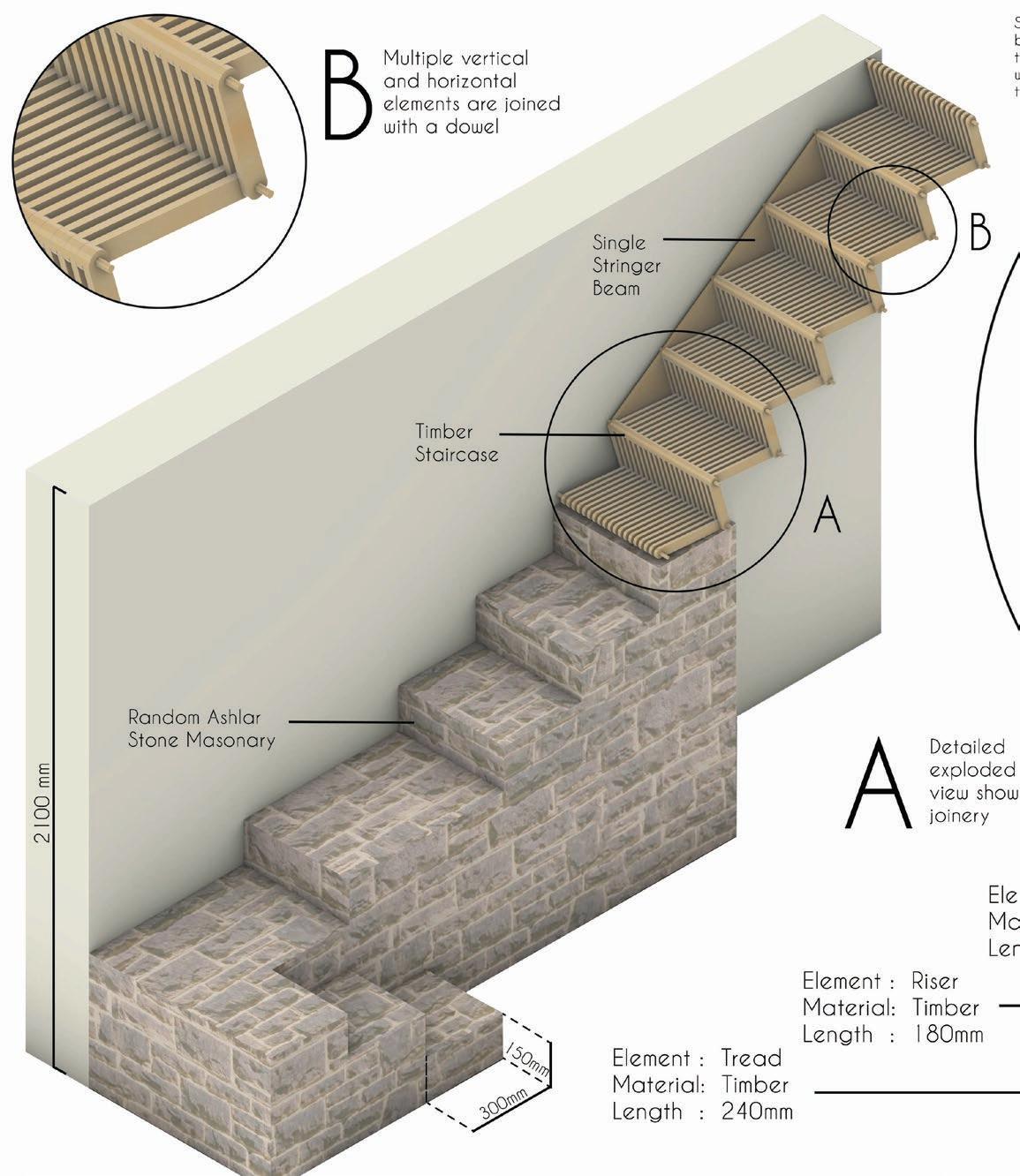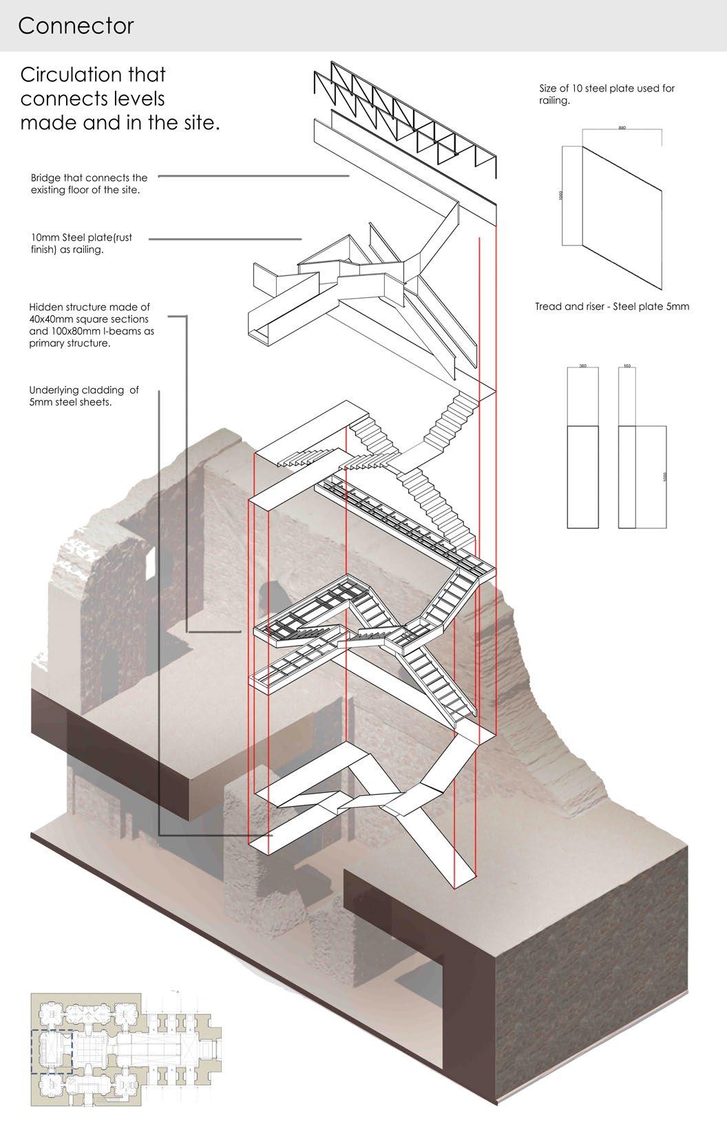 Aim is to create a staircase that connects to the plinth . The plinth acts as a rehersal and activity zone on the exterior of the building