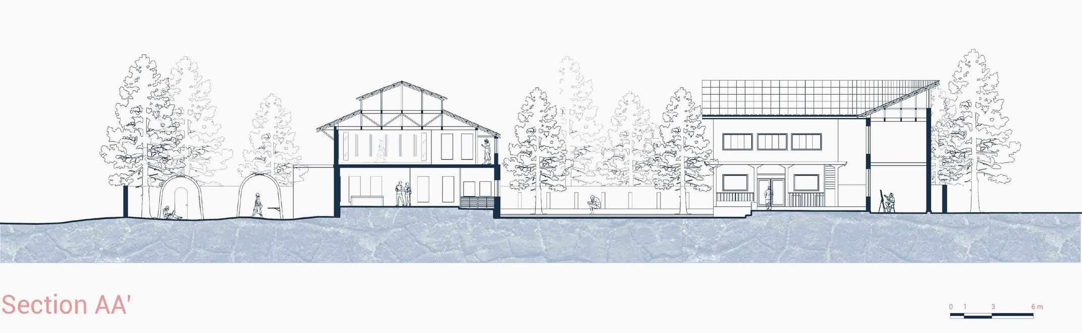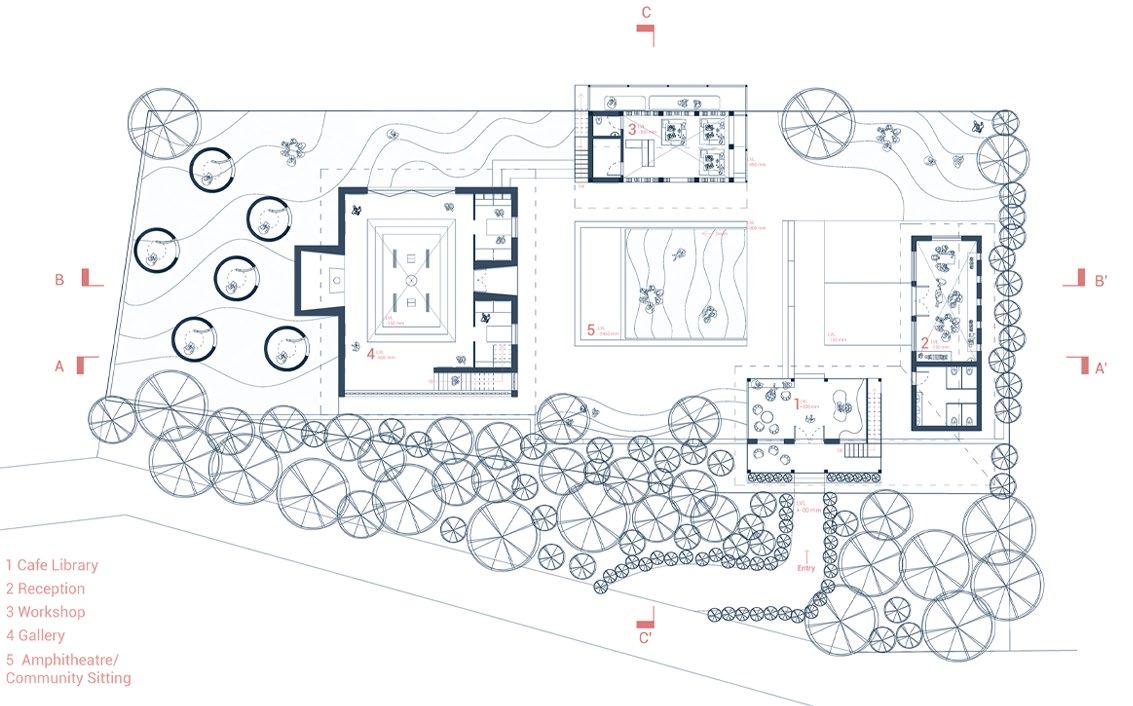 The aim is to create an open and contextually neovernacular build where communities, as well as travellers, acquire knowledge through art and dialogue. Taking advantage of the site, the space explores landscape in its natural and designed form.