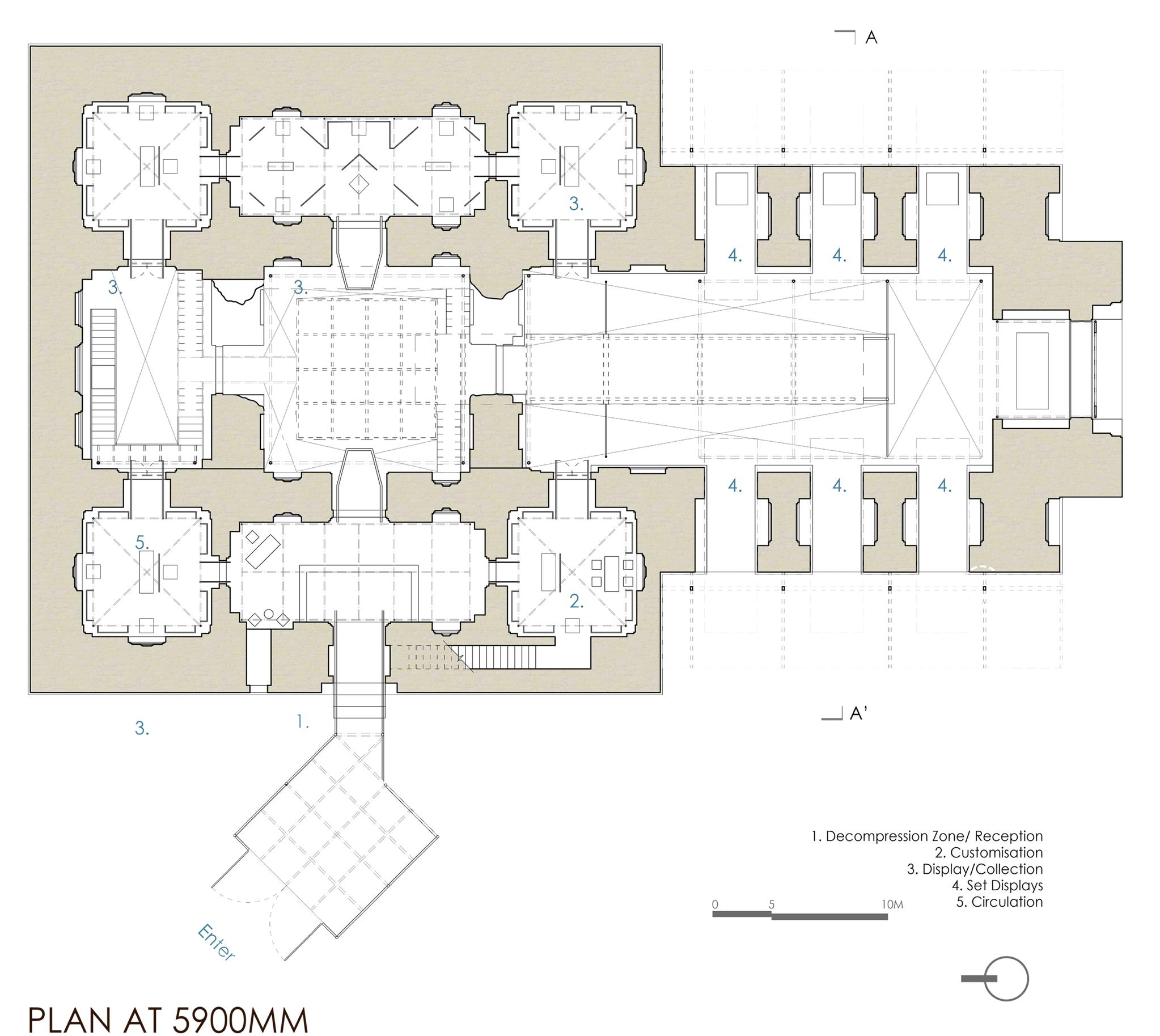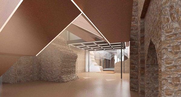 Upon entering the space, one is introduced to the circulation and central space which is structured for suspending installations