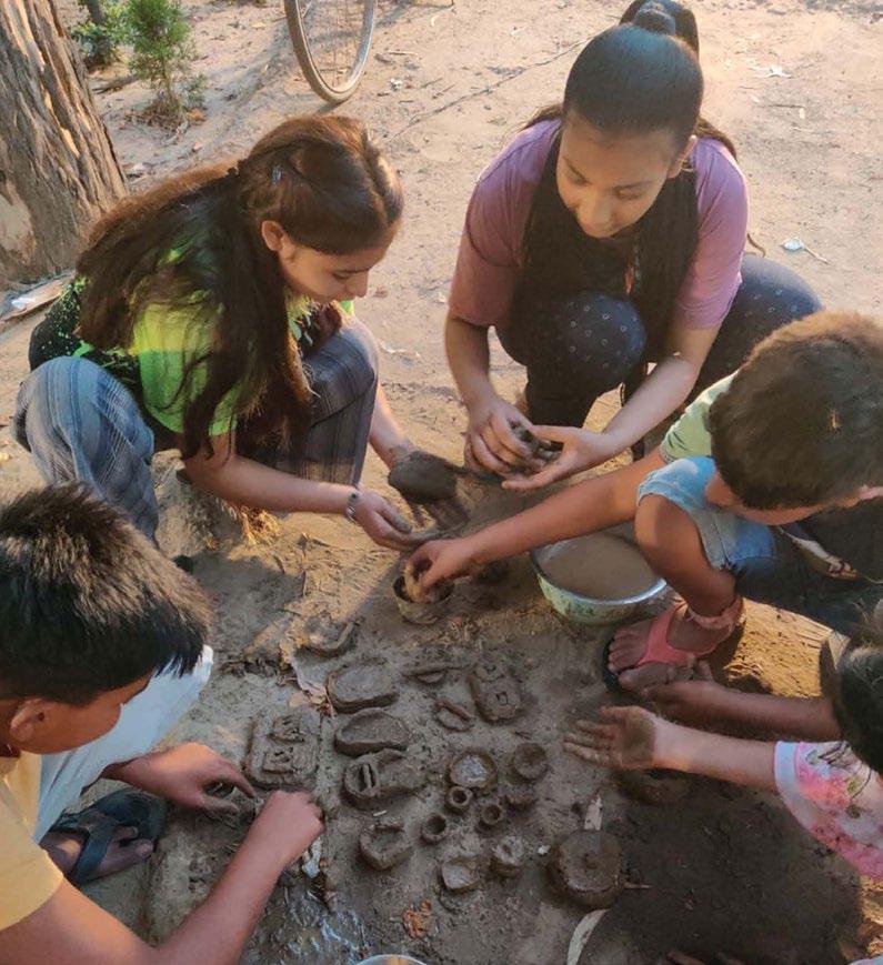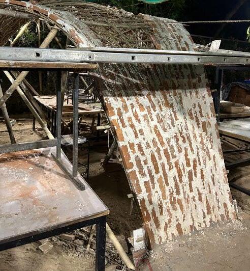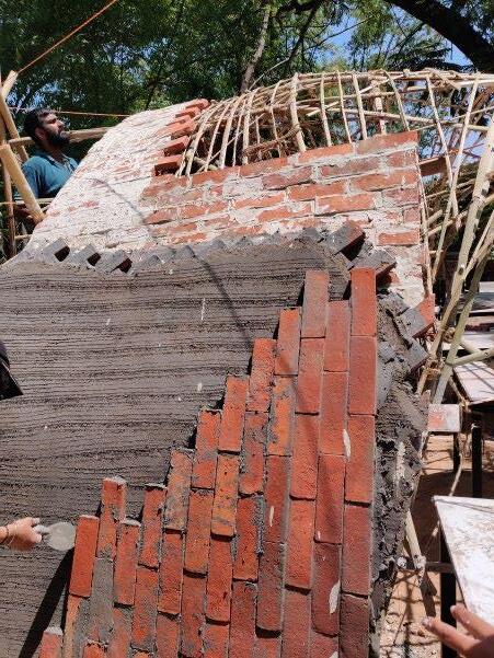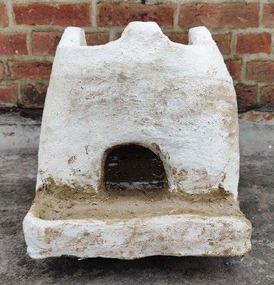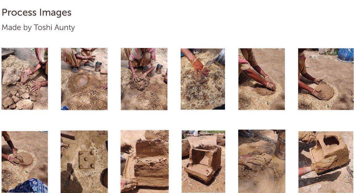 The process of making starts with collecting mud and mixing it with straws. Over a period of three days, the base, walls and top is formed and then covered with cow dung for finish and protection.